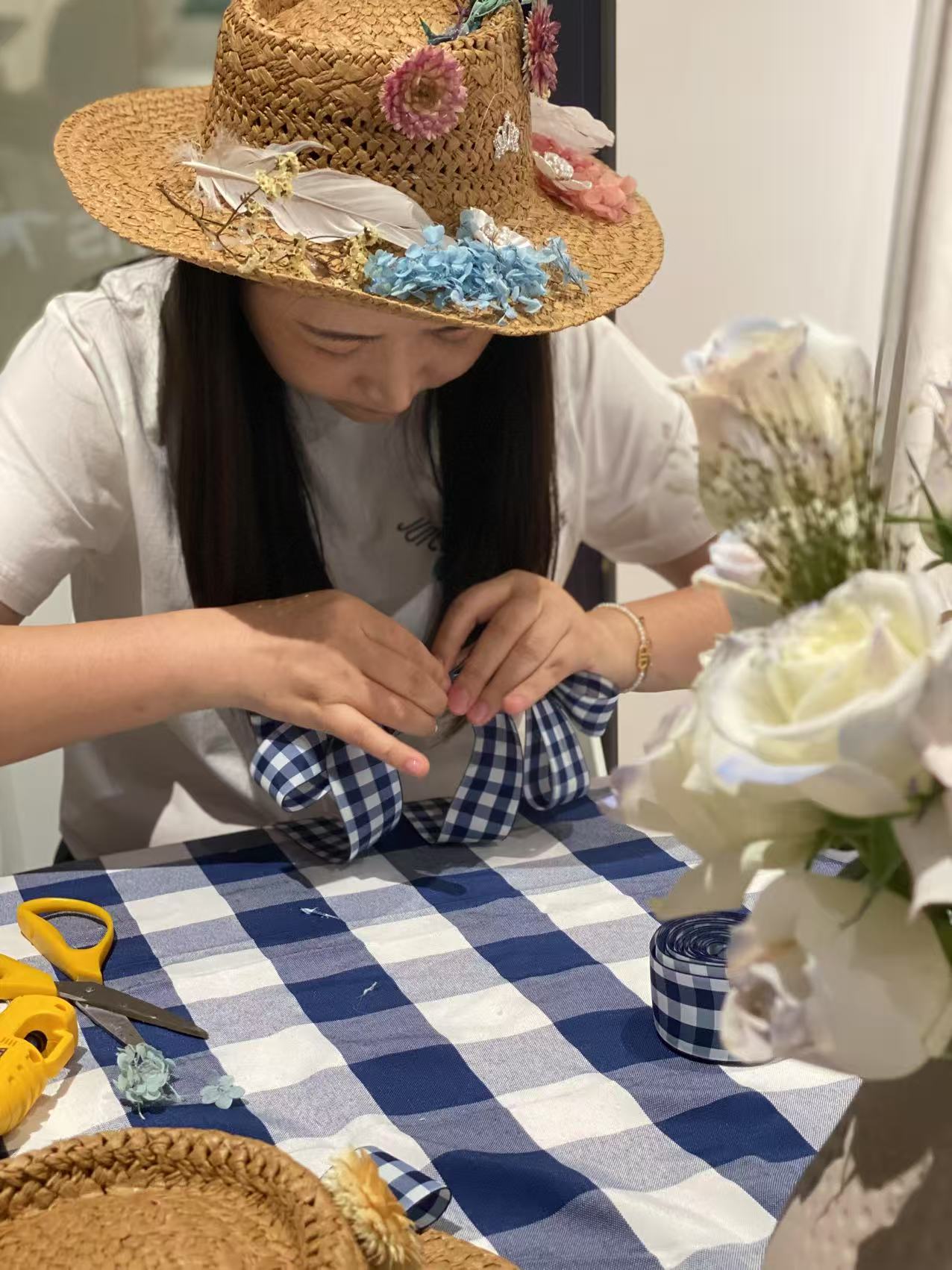 7月13日,海丝腾福州经销商团队将展厅化身为一个充满欢声笑语的创意工坊。十二位挚友携家人一同赴约,开启了一场别开生面的手工草帽DIY之旅。