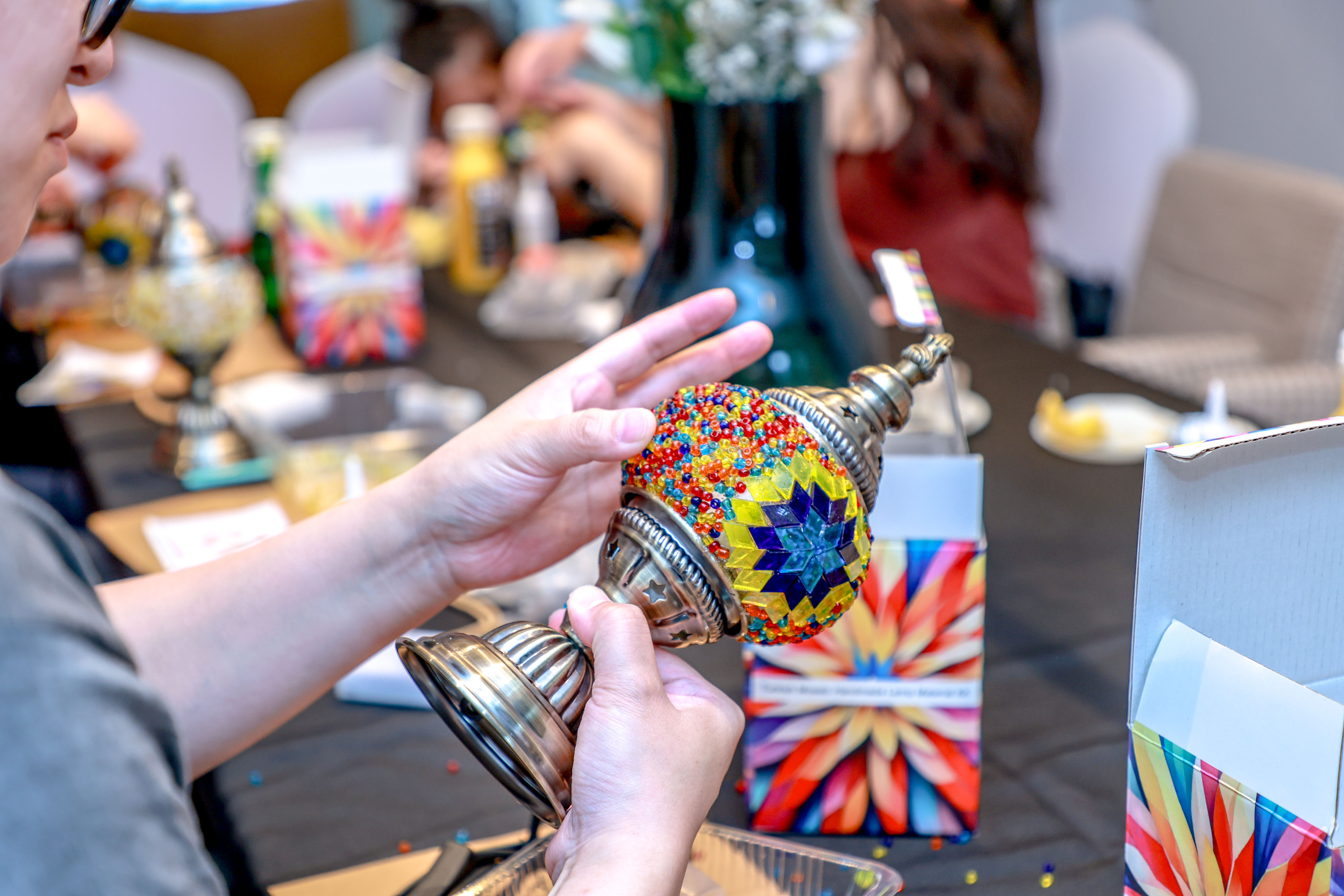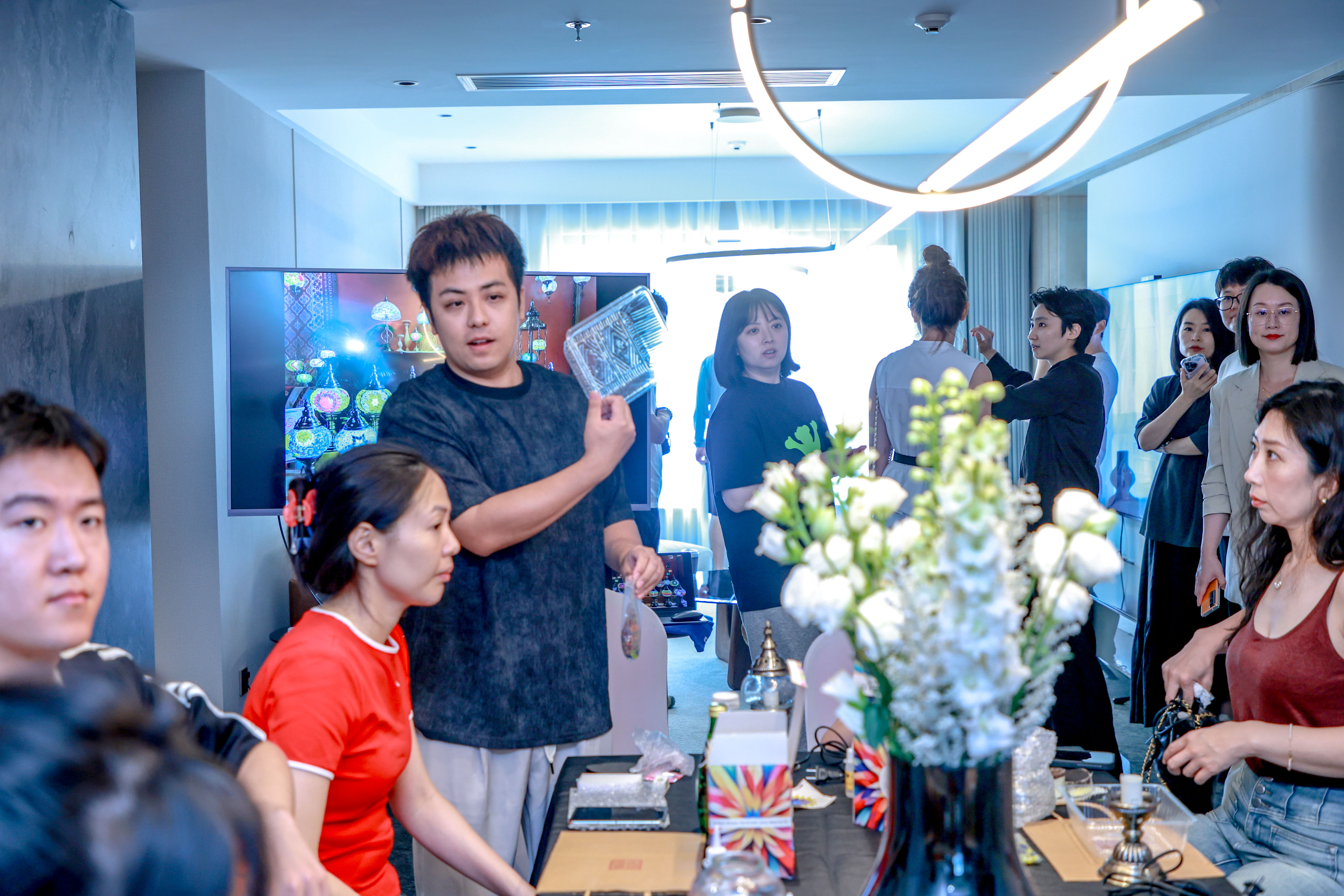 7月26日,海丝腾沈阳经销商团队将手作的温度带到了雅颂阁的实景样板间。在这场名为"以手温度,点亮生活"的奢品私享会上,十组高净值客户家庭体验了土耳其马赛克灯的手工制作。