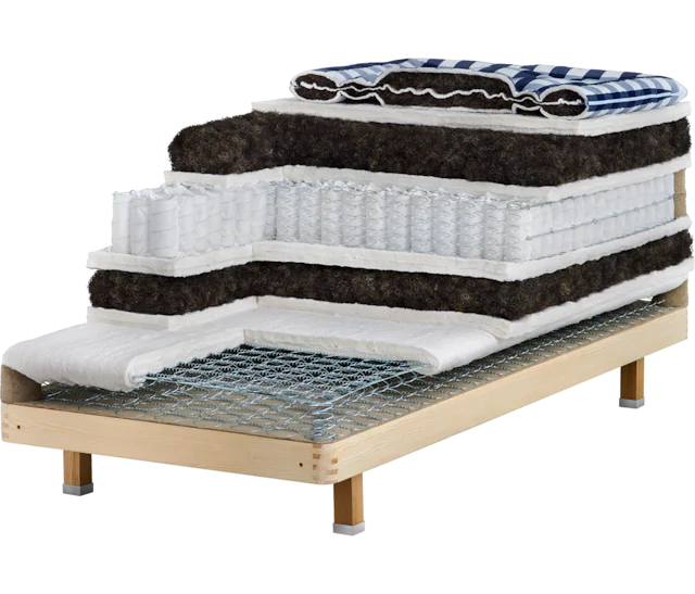尽管 2000T 的品质和舒适程度已经难以超越,但海丝腾依然坚持每年不断改进,以期将制床技艺推向更高境界。以现在为例。我们采用多层更为纤薄的马尾毛,并在中间加入更纤薄的棉花和羊毛。这项手工揉合纤维工艺堪称一门艺术,耐心和灵巧缺一不可。功夫不负有心人,辛苦的付出最终成就了一件件柔韧透气、舒适怡人的精品杰作。